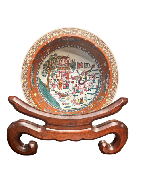 Vintage Chinese Porcelain Bowl with Qing Stand